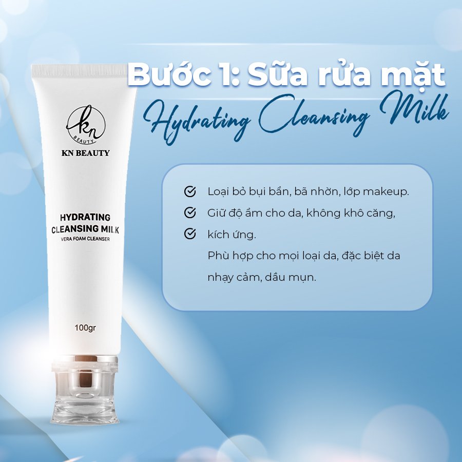 Bắt đầu với bước quan trọng nhất – làm sạch da từ bên trong với Sữa Rửa Mặt Hydrating Cleansing Milk. Sản phẩm không chỉ giúp loại bỏ bụi bẩn, mà còn thông thoáng lỗ chân lông, ngăn ngừa các vấn đề về da và đồng thời dưỡng ẩm, giúp da trở nên sáng mịn và đều màu.