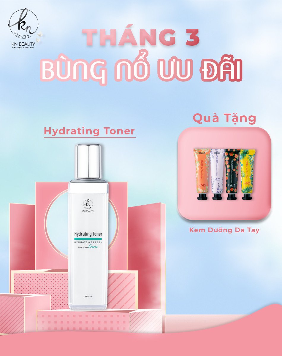 - Mua toner tặng kem dưỡng da tay Khi mua toner tại KN Beauty, bạn sẽ được tặng ngay một sản phẩm kem dưỡng da tay. Kem dưỡng da tay của KN Beauty có chứa các thành phần tự nhiên, giúp dưỡng ẩm và chống lão hóa cho đôi tay của bạn.