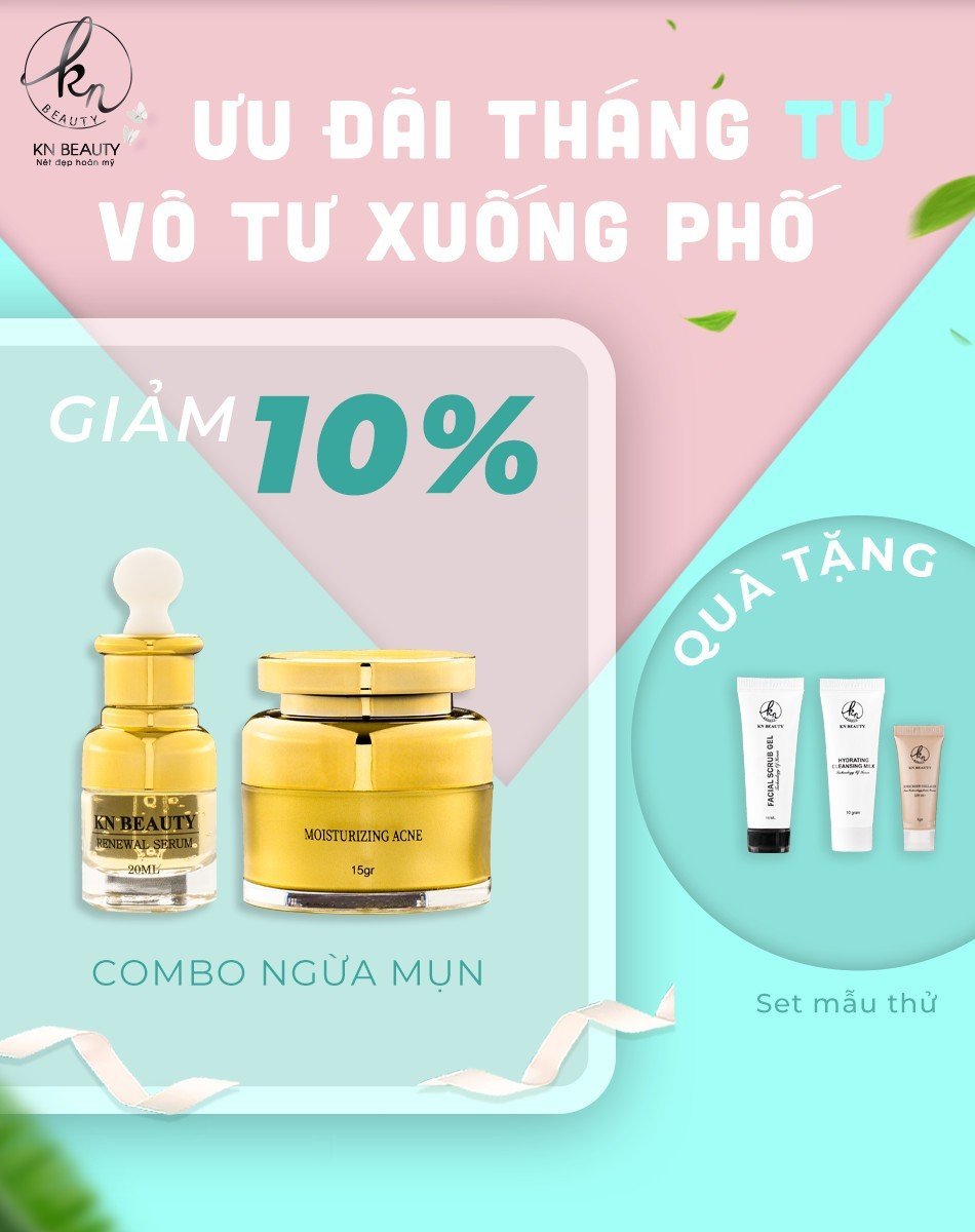 Chương trình khuyến mãi tháng 4 của KN Beauty giúp các chị có nhiều cơ hội để sở hữu các sản phẩm chất lượng với giá ưu đãi hơn. Các sản phẩm của KN Beauty được làm từ các thành phần tự nhiên, không gây kích ứng da và giúp cải thiện tình trạng da hiệu quả.