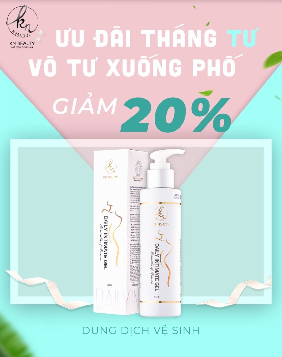 5. Không chỉ có những sản phẩm chăm sóc da, KN Beauty còn có dung dịch vệ sinh cá nhân hàng ngày được bào chế theo Công thức độc quyền của PHÁP với thành phản dưỡng có nguồn gốc thiên nhiên giúp vùng kín được làm sạch dịu nhẹ, an toàn và hiệu quả.. Trong tháng 4 này, khi mua sản phẩm này khách hàng sẽ được giảm giá 20%.
