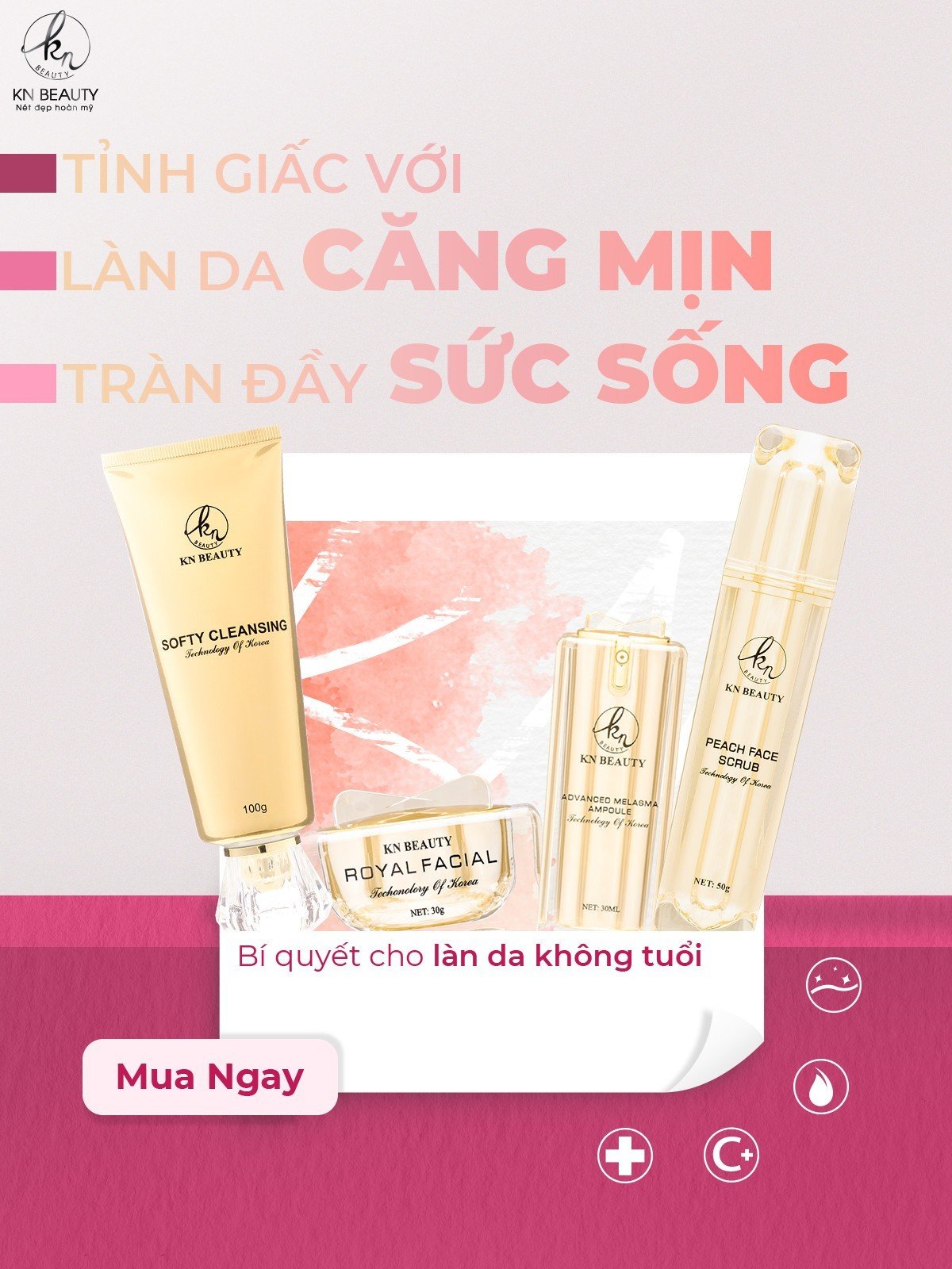 Chưa bao giờ là quá sớm để bắt đầu chăm sóc da của bạn. Với combo siêu gold từ KN BEAUTY, bạn có thể đạt được hiệu quả cao nhất trong quá trình chống lão hóa và làm đẹp. Đừng để thời gian làm mờ đi vẻ đẹp tự nhiên của bạn. Hãy chăm sóc da ngay từ hôm nay để tự tin đón Tết rực rỡ cùng với làn da trẻ trung, mịn màng, và trắng khỏe!