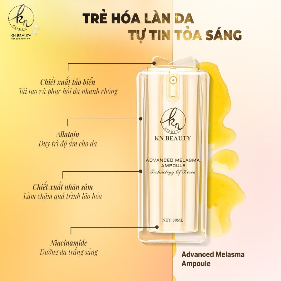 Với công thức độc đáo của Ampoule Nâng Cơ Advanced Melasma, KN BEAUTY đã tạo ra một sản phẩm không thể thiếu trong quá trình chăm sóc da hàng ngày. Sự kết hợp hoàn hảo giữa các thành phần chất lượng cao giúp nuôi dưỡng làn da từ sâu bên trong, tăng cường độ đàn hồi và đồng thời ngăn chặn hiệu quả các dấu hiệu lão hóa.